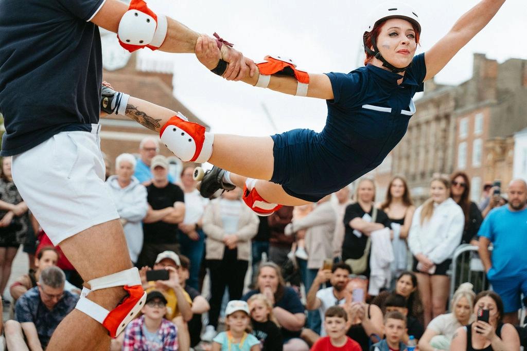 Deux artistes présentent un numéro de patins à roulettes spectaculaire, inspiré par le roller derby. Sur scène, ils offrent une sorte de bataille chorégraphiée, à la fois physique et théâtrale, avec des acrobaties impressionnantes. Mais le spectacle ne se limite pas à la technique : l’humour du commentateur et la comédie gestuelle des artistes rendent la performance vivante et amusante, pour petits et grands. Le tout est accompagné par la musique d’Émile Waldteufel, notamment sa célèbre Valse des Patineurs, qui apporte une touche poétique et élégante à l’ensemble. Un spectacle original qui mêle humour, mouvement et virtuosité sur roulettes.